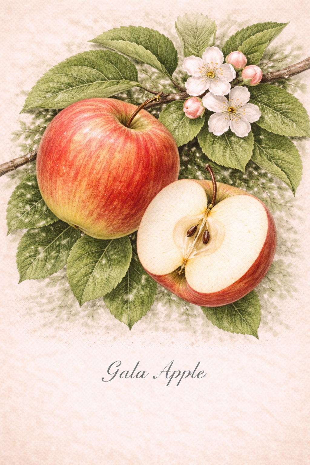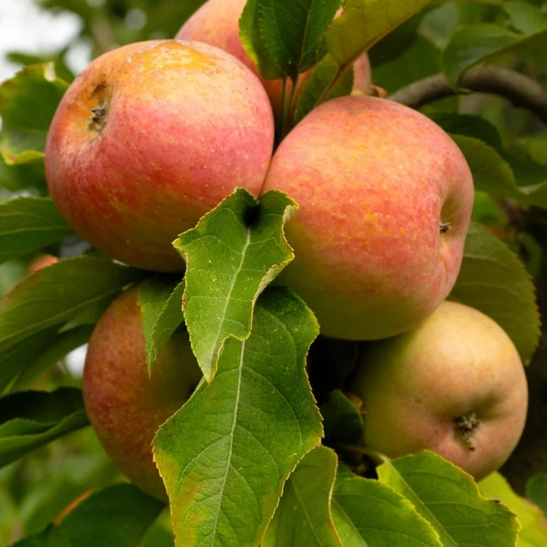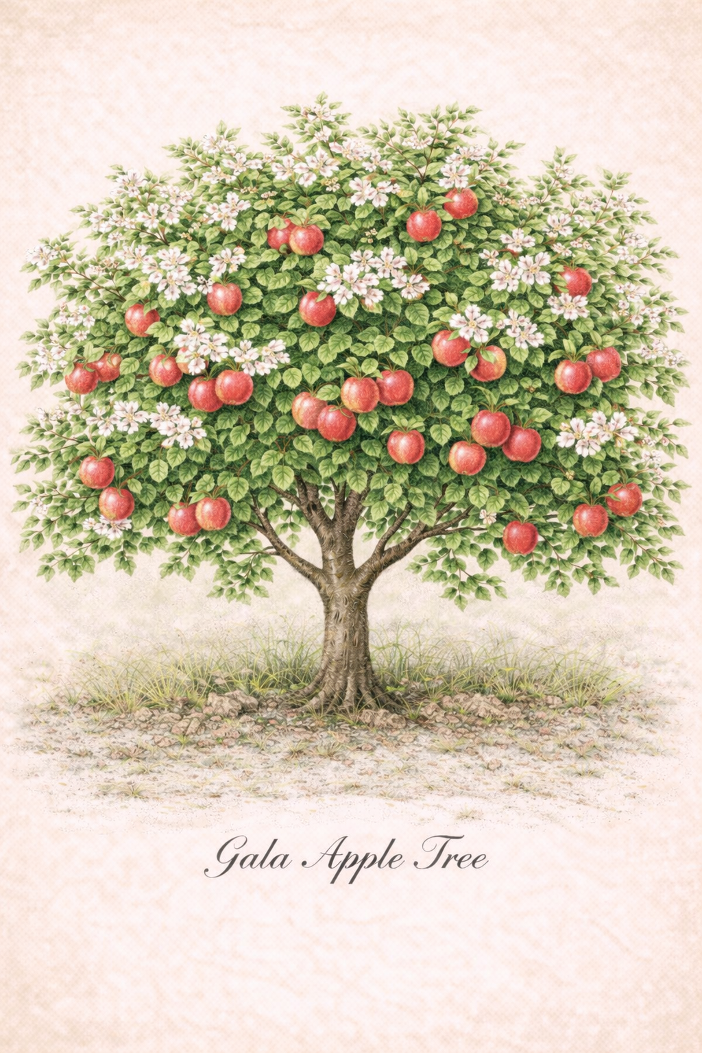 The Gala Apple is often considered the perfect "starter" apple for home gardeners. Originally from New Zealand, it is a cross between 'Kidd's Orange Red' and 'Golden Delicious'. The fruit of the Gala Apple is medium-sized with a distinctive yellow-orange skin overlaid with red striping. Its creamy-white flesh offers a perfect balance of sweetness and tartness, making it ideal for snacking, fresh salads, baking, and juicing. With its thin skin and juicy flesh, Gala apples are a delightful addition to any fruit bowl or picnic basket, offering a burst of flavor with every bite. In addition to their exceptional taste. Gala apple trees are also prized for their ornamental value. In spring, these trees burst into bloom with clusters of delicate pink and white flowers, adding a touch of elegance to the landscape. As the seasons progress, the foliage of Gala apple trees provides a lush backdrop of green, creating a picturesque scene in any orchard or backyard garden. One of the many benefits of growing Gala apple trees is their ease of cultivation. With proper pruning and care, Gala apple trees can be trained into a variety of shapes and sizes, from compact dwarf varieties suitable for small gardens to standard-sized trees for larger orchards.