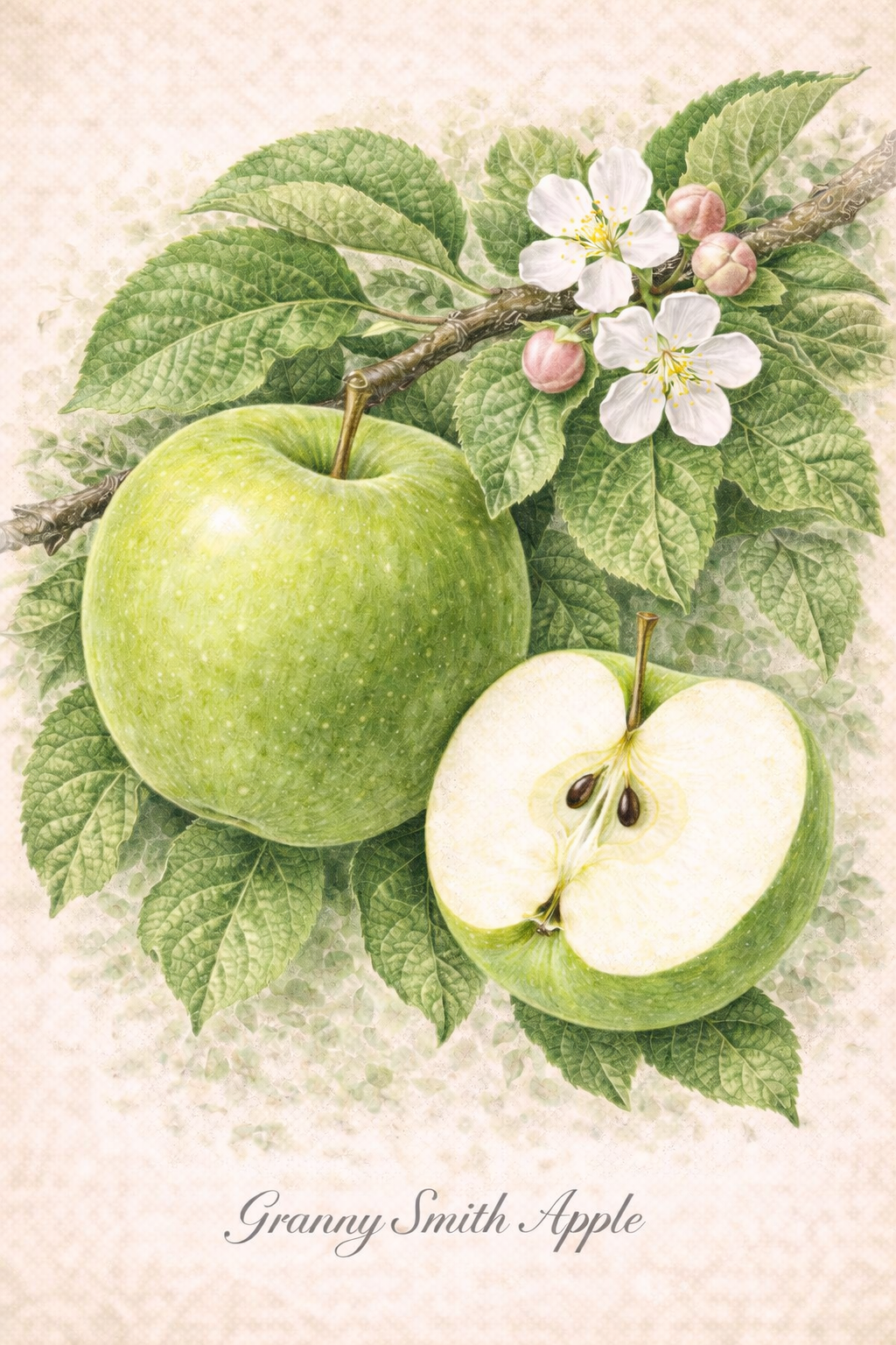 Harvesting: Granny Smith Apples typically ripen in the fall, usually from late September to mid-October, depending on the growing region. The fruit is ready for harvest when it reaches its characteristic green color and can be easily removed from the tree with a gentle twist. Apples should be handled carefully to avoid bruising and stored in a cool, humid environment to maintain their quality and crispness.