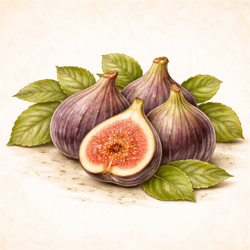 Description: The Brown Turkey Fig is a deciduous shrub or small tree with large, lobed leaves that are dark green and slightly hairy on the upper surface and lighter green underneath. It produces medium to large-sized fruit with a purplish-brown skin and sweet, reddish-pink flesh. The fruit is typically pear-shaped or round and can be eaten fresh or used in cooking, baking, or drying. Brown Turkey Figs are self-pollinating, meaning they do not require another fig tree for pollination.